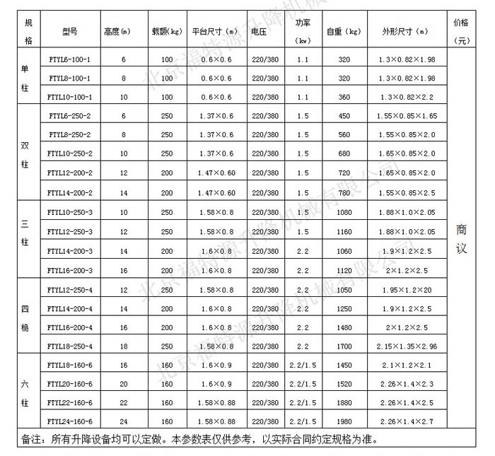 通常有單柱、雙柱、三柱、四柱、六柱等形式,根據需要可以加裝輔助行走裝置,為了放過通過低矮的通道可以定做為可斜式,還可以安裝到汽車、電瓶車等方便高空作業使用。
