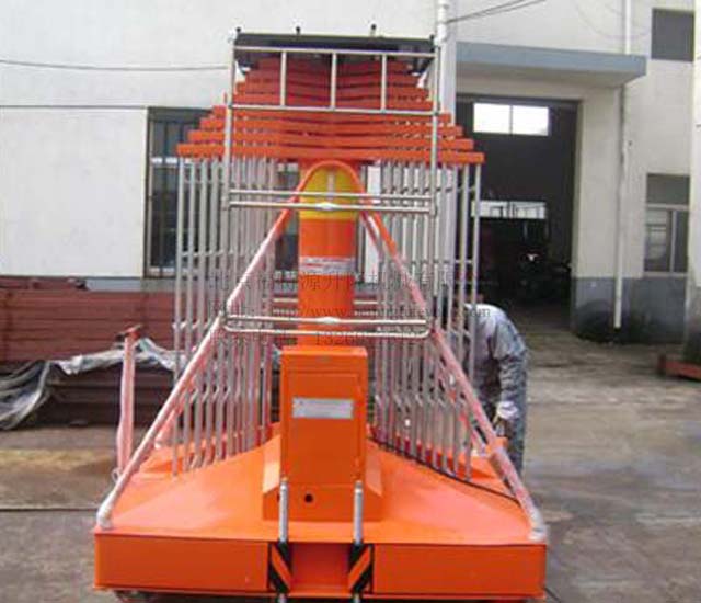 該產品是一種多用途的單作用伸縮式套簡油缸組成的垂直升降機械。可廣泛用于車站、碼頭、賓館大廳、車間等高空作業的場合。整機設計結構緊湊、晃動小、重量輕、移動方便等特點,是登高作業安全,經濟實用的機具。