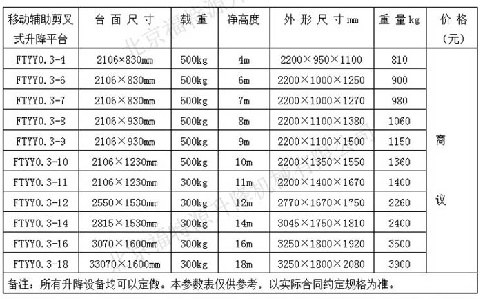 ▍移動升降機常規參數 / Product Parameter