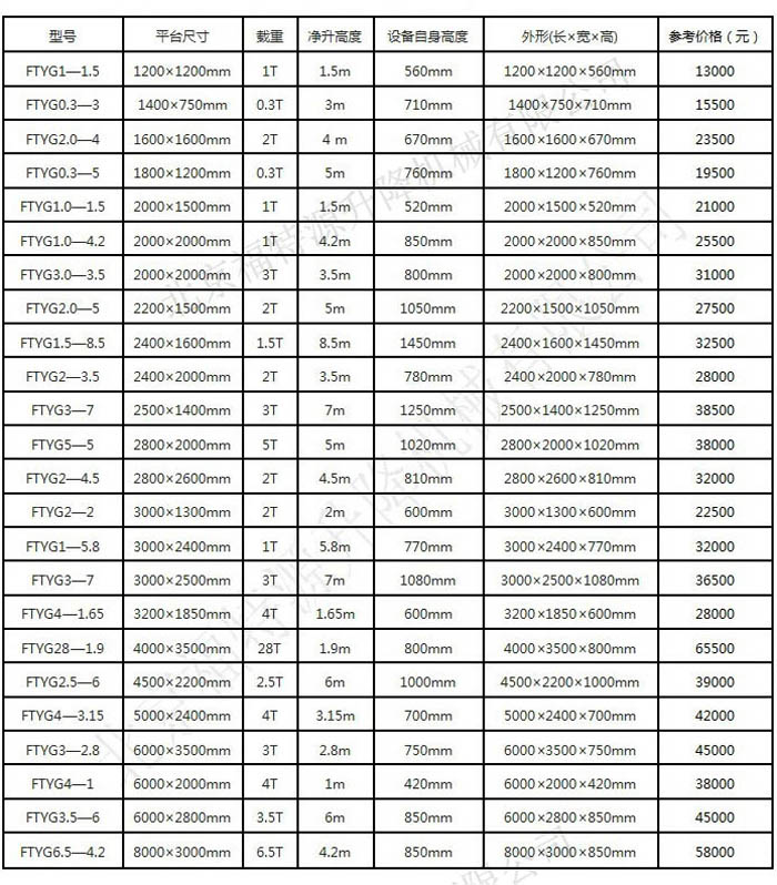 ▍固定升降機常規參數 / Product Parameter