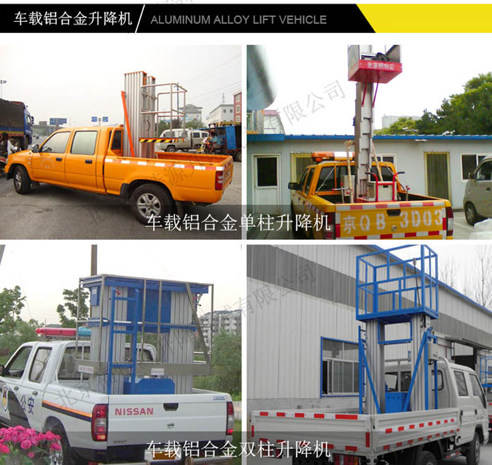 車載式升降機是為提高升降機的機動性,將升降機固定在電瓶搬運車或貨車上,它接取汽車引擎動力,實現車載式升降機的升降功能。以適應廠區內外的高空作業。 廣泛應用于賓館、大廈、機場、車站、體育場、車間、倉庫等場所的高空作業;也可作為臨時性的高空照明、廣告宣傳等。