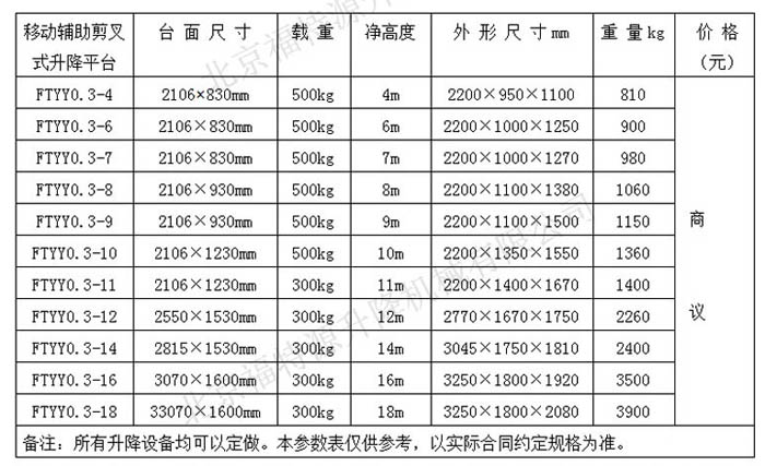 ▍輔助剪叉升降機常規參數 / Product Parameter